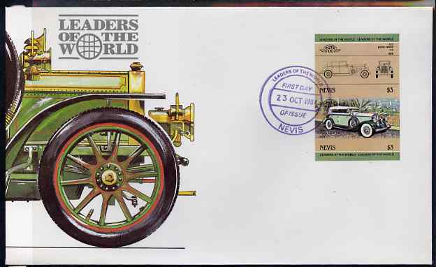 Nevis 1984 Cars #2 (Leaders of the World) $3 Pierce Arrow - imperforate se-tenant pair on illustrated cover with first day cancellation, as SG 209a very few imperfs are known on cover