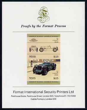 Nevis 1985 $1.15 MG K3 Magnette (1933) imperf se-tenant proof pair mounted on Format International proof card (as SG 332a)