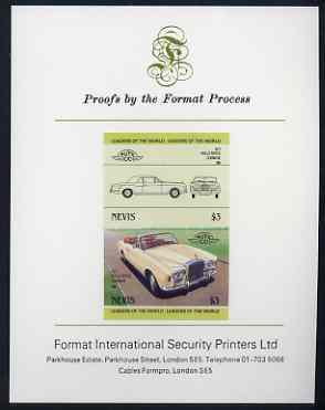 Nevis 1985 $3 Rolls Royce Corniche (1971) imperf se-tenant proof pair mounted on Format International proof card (as SG 263a)
