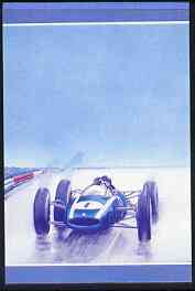 Nevis 1985 60c Cooper Climax (1960) imperf progressive colour proof se-tenant pair printed in blue & magenta only (as SG 257a) unmounted mint