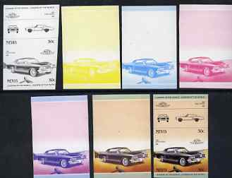 Nevis 1985 Buick 1963 Riviera 50c (Leaders of the World) set of 7 imperf progressive colour proofs in se-tenant pairs comprising the 4 basic colours plus 2, 3 and all 4-colour composites (couple slightly cut into)