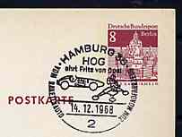 Postmark - West Berlin 1968 8pfg postal stationery card with special Hamburg cancellation for 'From Rocket Car to Moon Vehicle' Stamp Exhibition, Hamburg illustrated with Rocket Car & Moon Vehicle