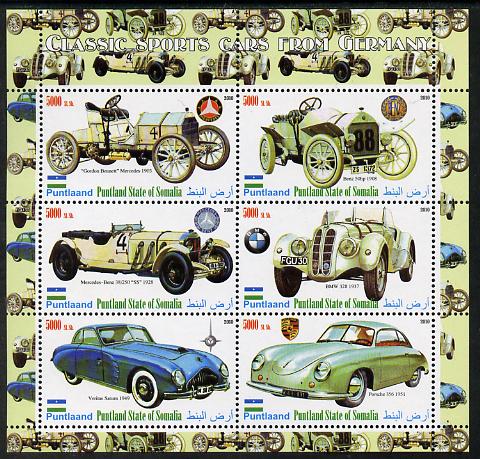Puntland State of Somalia 2010 Classic Sports Cars of Germany perf sheetlet containing 6 values unmounted mint