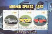 Rwanda 2000 Modern Sports Cars perf sheetlet containing set of 3 values unmounted mint