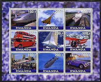 Rwanda 2000 Various Transports perf sheetlet containing 9 values unmounted mint (Concorde, Buses, etc)