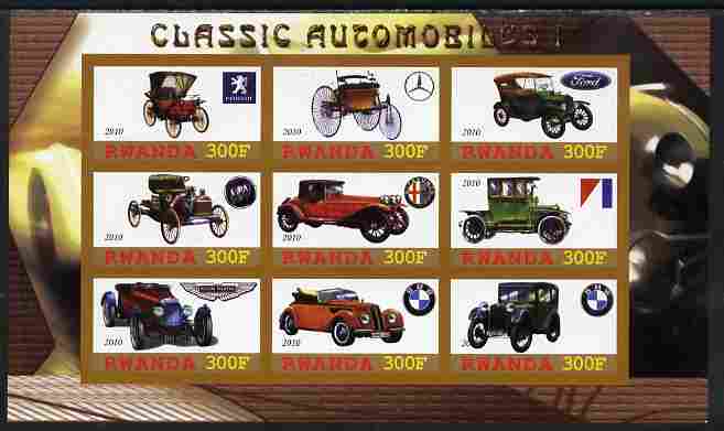Rwanda 2010 Classic Cars #1 imperf sheetlet containing 9 values unmounted mint