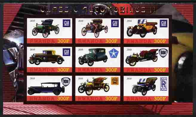 Rwanda 2010 Classic Cars #2 imperf sheetlet containing 9 values unmounted mint