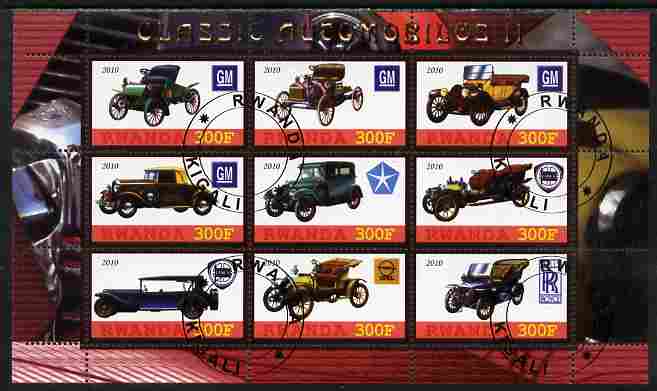 Rwanda 2010 Classic Cars #2 perf sheetlet containing 9 values fine cto used
