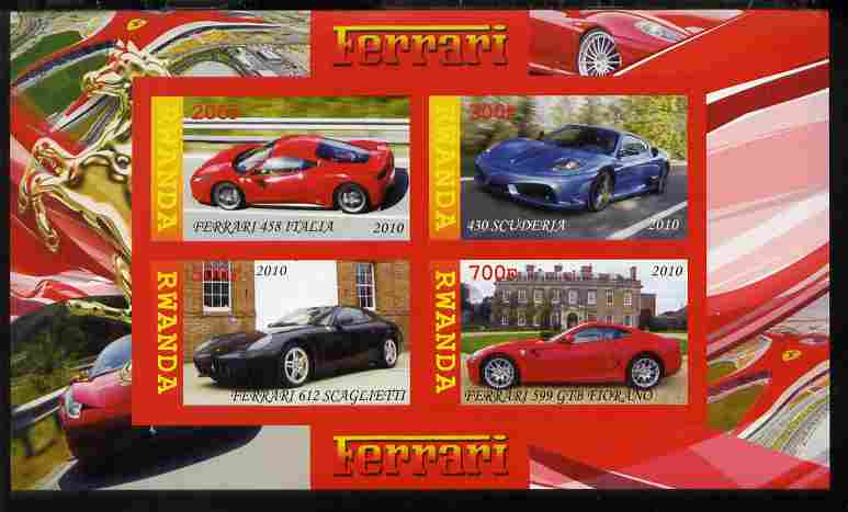 Rwanda 2010 Ferrari Cars imperf sheetlet containing 4 values unmounted mint