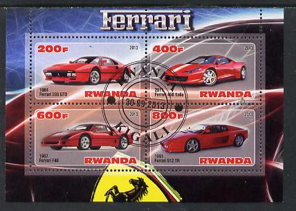 Rwanda 2013 Ferrari Cars #1 perf sheetlet containing 4 values fine cto used