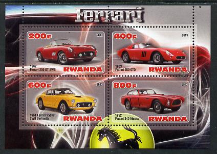 Rwanda 2013 Ferrari Cars #2 perf sheetlet containing 4 values unmounted mint