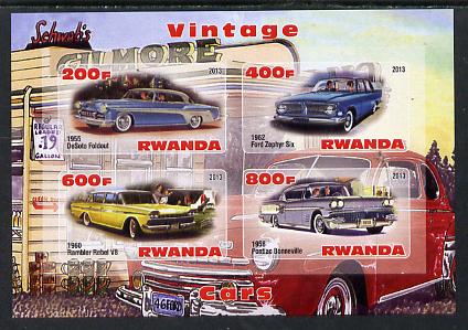 Rwanda 2013 Vintage Cars #3 imperf sheetlet containing 4 values unmounted mint