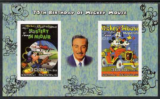 Somalia 2004 75th Birthday of Mickey Mouse #23 - Magazine covers imperf sheetlet containing 2 values plus label, unmounted mint