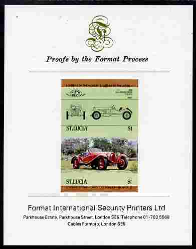 St Lucia 1984 Cars #1 (Leaders of the World) $1 Alfa Romeo (1930) imperf se-tenant proof pair mounted on Format International proof card