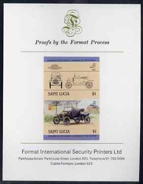 St Lucia 1984 Cars #2 (Leaders of the World) $1 Ford Model 'T' (1914) imperf se-tenant proof pair mounted on Format International proof card