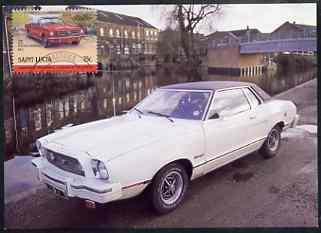 St Lucia 1984 Cars #2 (Leaders of the World) 75c Ford Mustang (1965) Postcard bearing appropriate stamp with first day cancel