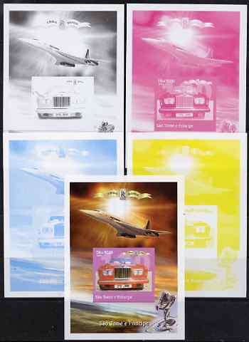 St Thomas & Prince Islands 2004 Rolls Royce Centenary #03 s/sheet - the set of 5 imperf progressive proofs comprising the 4 individual colours plus all 4-colour composite, unmounted mint