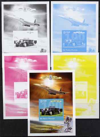 St Thomas & Prince Islands 2004 Rolls Royce Centenary #05 s/sheet - the set of 5 imperf progressive proofs comprising the 4 individual colours plus all 4-colour composite, unmounted mint