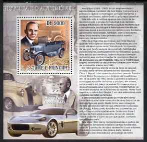 St Thomas & Prince Islands 2007 History of Cars - Henry Ford perf deluxe s/sheet containing 1 value unmounted mint