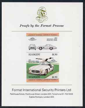 St Vincent 1983 $1.50 Mercedes Benz 300SL (1954) imperf se-tenant proof pair mounted on Format International proof card (as SG 733a)