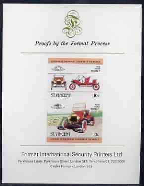 St Vincent 1983 10c Ford Model 'T' (1908) imperf se-tenant proof pair mounted on Format International proof card (as SG 727a)