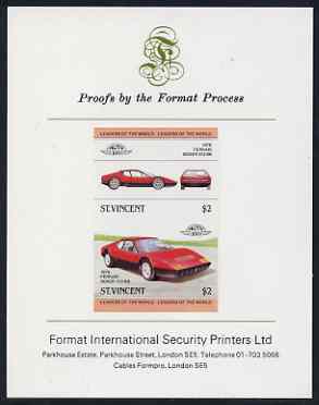 St Vincent 1983 $2 Ferrari Boxer,512BB (1976) imperf se-tenant proof pair mounted on Format International proof card (as SG 737a)
