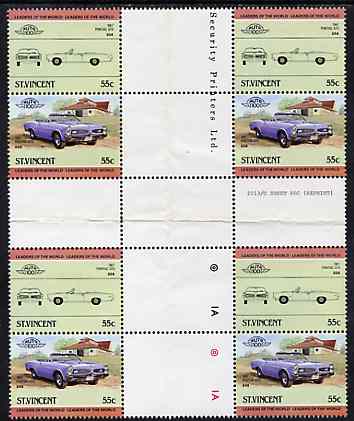 St Vincent 1984 Cars #2 (Leaders of the World) 55c (1967 Pontiac) in se-tenant cross-gutter block (folded through gutters) from uncut archive proof sheet, some split perfs & wrinkles but a rare archive item, SG 824a unmounted mint