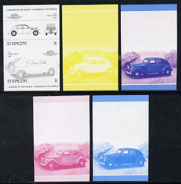 St Vincent 1985 Cars #3 (Leaders of the World) 1c Lancia Aprilia (1937) set of 5 imperf progressive colour proofs in se-tenant pairs comprising the 4 basic colours plus blue & magenta composite (5 pairs as SG 862a) unmounted mint