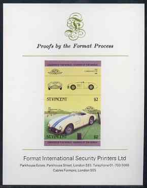 St Vincent 1985 Cars #3 (Leaders of the World) $2 Cunningham C-5R (1953) imperf se-tenant proof pair mounted on Format International proof card