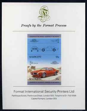 St Vincent 1985 Cars #3 (Leaders of the World) 55c Pontiac Firebird (1973) imperf se-tenant proof pair mounted on Format International proof card