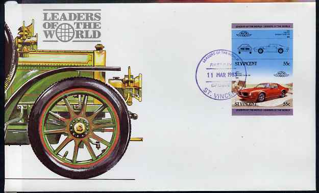 St Vincent 1985 Cars #3 (Leaders of the World) 55c Pontiac Firebird (1973) - imperforate se-tenant pair on illustrated cover with first day cancellation, as SG 864a very few imperfs are known on cover