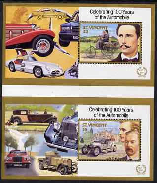 St Vincent 1987 Centenary of Motoring (with Designers) set of 4 m/sheets (2 pairs from uncut proof sheets) unmounted mint SG MS 1089