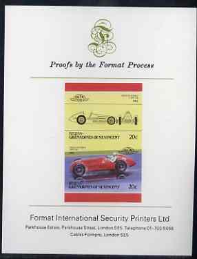 St Vincent - Bequia 20c Alfa Romeo (1950) imperf se-tenant proof pair mounted on Format International proof card