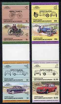 St Vincent - Union Island 1985 Cars #2 (Leaders of the World) set of 8 opt'd SPECIMEN unmounted mint