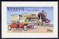 Staffa 1972 Pictorial imperf souvenir sheet (35p value) Transport (Flying Scotsman & RR Silver Ghost) opt'd IBRA Munich 1973 unmounted mint