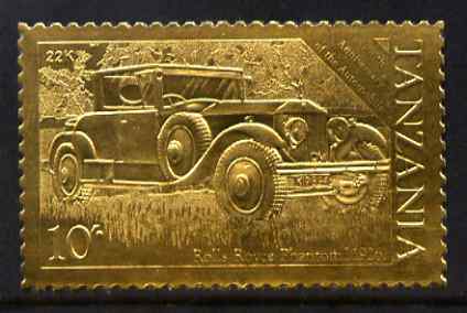 Tanzania 1986 Centenary of Motoring 10s Rolls Royce embossed in 22k gold foil unmounted mint as SG 458