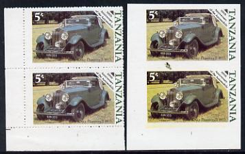 Tanzania 1986 Centenary of Motoring 5s Rolls Royce Phantom in unmounted mint imperf marginal pair (SG 457) plus normal pair