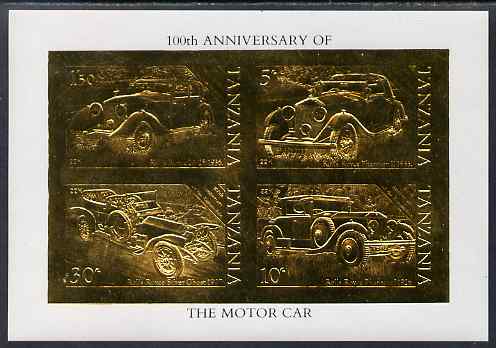 Tanzania 1986 Centenary of Motoring imperf m/sheet embossed in 22k gold foil unmounted mint similar to SG MS 460