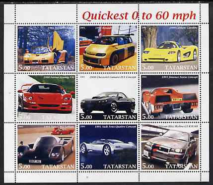 Tatarstan Republic 2001 Cars - Quickest 0 to 60 mph perf sheetlet containing set of 9 values unmounted mint