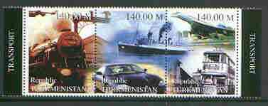 Turkmenistan 1999 Millennium (Transport) composite perf strip of 3
