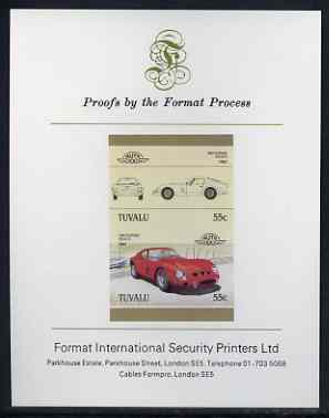 Tuvalu 1985 55c Ferrari imperf se-tenant proof pair mounted on Format International proof card (as SG 366a)