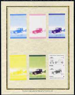 Tuvalu 1985 Cars #2 (Leaders of the World) 1c Rickenbacker set of 7 imperf progressive proof pairs comprising the 4 individual colours plus 2, 3 and all 4 colour composites mounted on special Format International cards (7 se-tenan……Details Below