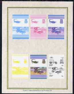 Tuvalu - Nanumea 1986 Cars #3 (Leaders of the World) 50c Peugeot Bébé set of 7 imperf progressive proof pairs comprising the 4 individual colours plus 2, 3 and all 4 colour composites mounted on special Format International cards (7 se-tenant proof pairs)