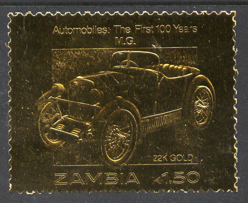 Zambia 1987 Classic Cars 1k50 MG in 22k gold foil unmounted mint
