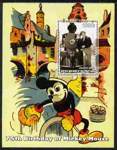 Benin 2003 75th Birthday of Mickey Mouse #12 perf s/sheet also showing Walt Disney, unmounted mint. Note this item is privately produced and is offered purely on its thematic appeal