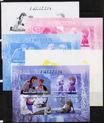 Benin 2014 Disney's Frozen sheetlet containing 4 values - the set of 5 imperf progressive proofs comprising the 4 individual colours plus all 4-colour composite, unmounted mint