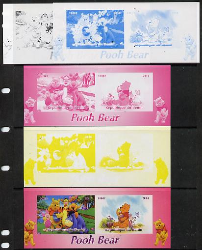 Benin 2014 Pooh Bear #2 sheetlet containing 2 values - the set of 5 imperf progressive proofs comprising the 4 individual colours plus all 4-colour composite, unmounted mint
