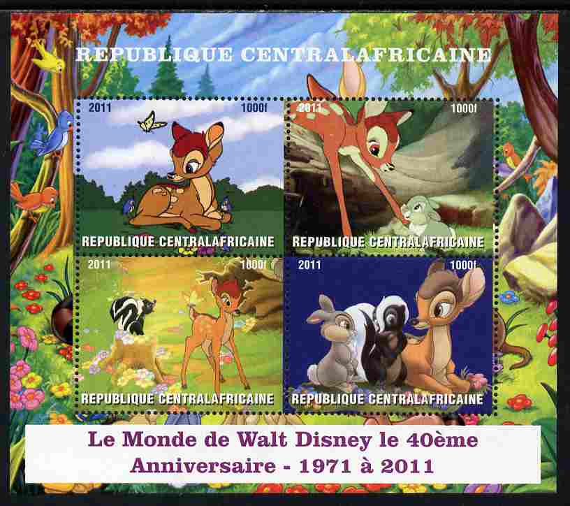 Central African Republic 2011 40th Anniversary of Walt Disney - Bambi #1 perf sheetlet containing 4 values unmounted mint. Note this item is privately produced and is offered purely on its thematic appeal, it has no postal validity