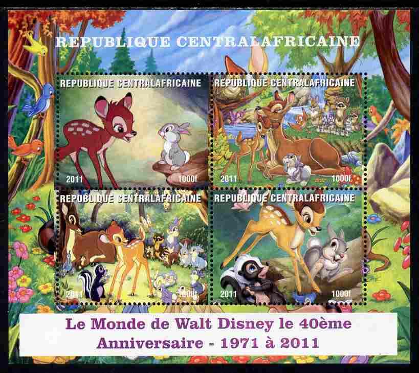 Central African Republic 2011 40th Anniversary of Walt Disney - Bambi #2 perf sheetlet containing 4 values unmounted mint. Note this item is privately produced and is offered purely on its thematic appeal