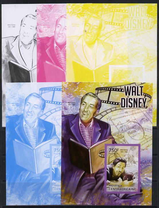 Central African Republic 2013 Walt Disney #4 m/sheet - the set of 5 imperf progressive proofs comprising the 4 individual colours plus all 4-colour composite, unmounted mint